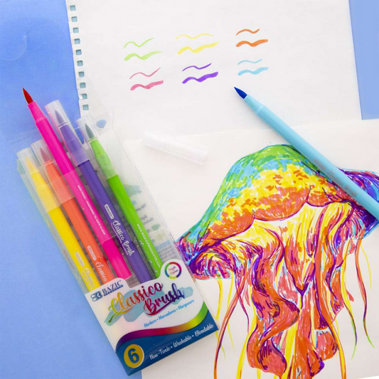 BAZIC Fine Tip Washable Brush Markers (6/Pack) - Fluorescent