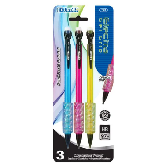 BAZIC Electra Fashion Colour 0.7mm Mechanical Pencil with Gel Grip (3/Pack)